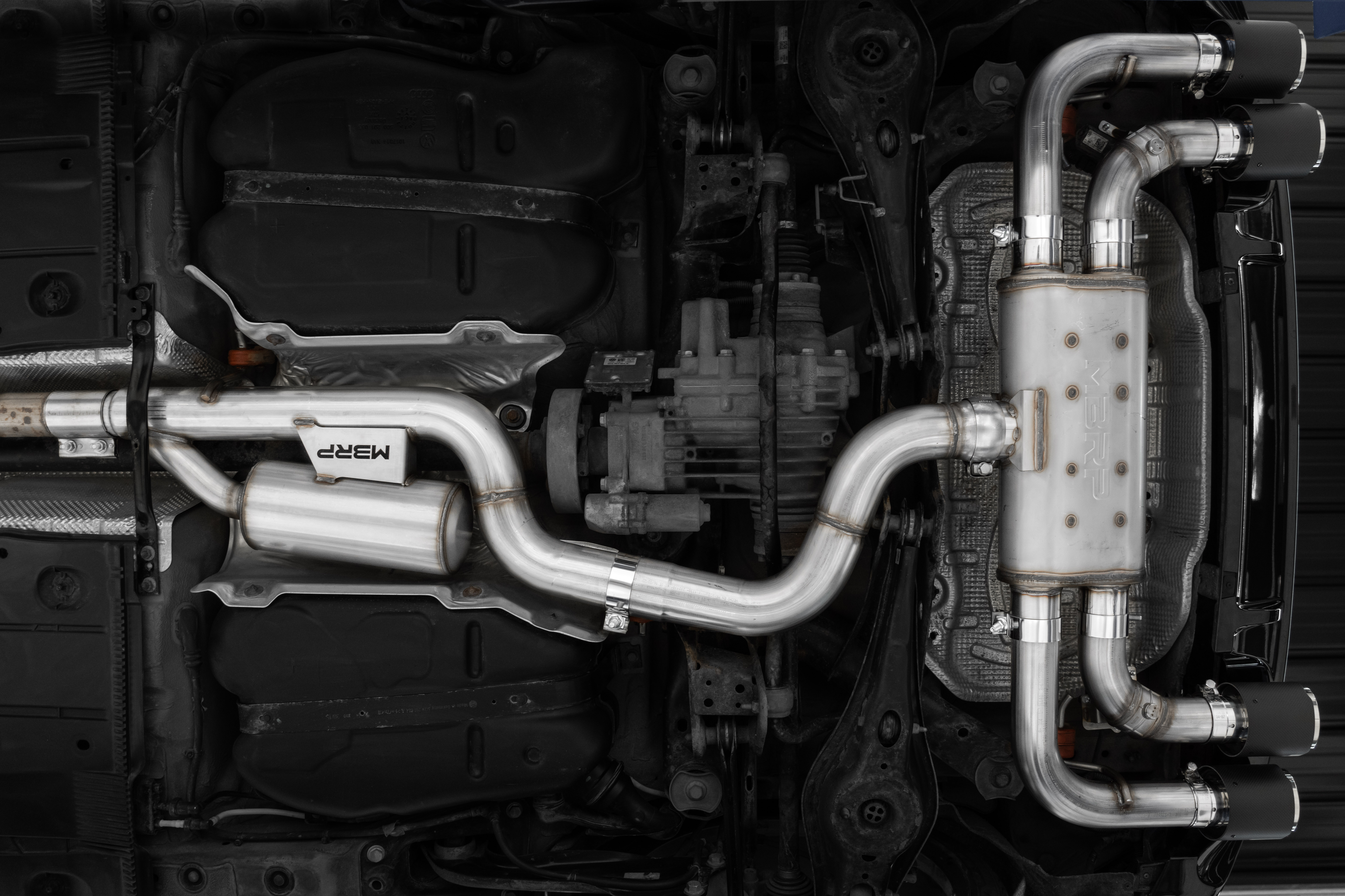 2015-2021 Volkswagen Golf R MK7/ MK7.5, T304 Stainless Steel 3 inch Cat-Back, Active Quad Rear Exit with 4 inch OD, Carbon Fiber Tips Included.